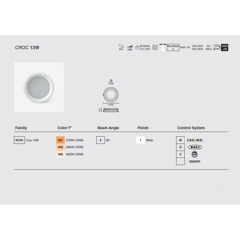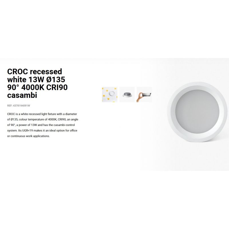 Vezi fișa cu informații despre produsCROC este un corp de iluminat alb incastrat, optica microprismatică pentru controlul strălucirii îl face o opțiune perfectă pentru iluminatul general al spatiilor comerciale si rezidentialeare, datorita protectiei IP44 este ideal pentru spațiile cu prezența umidității.