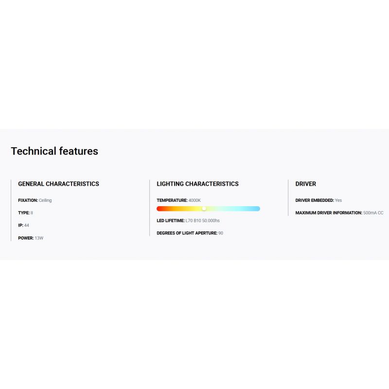 Dimensiuni | diametru:13,5cm; inaltime5,2cm; diametru decupaj tavan:12,6cm |