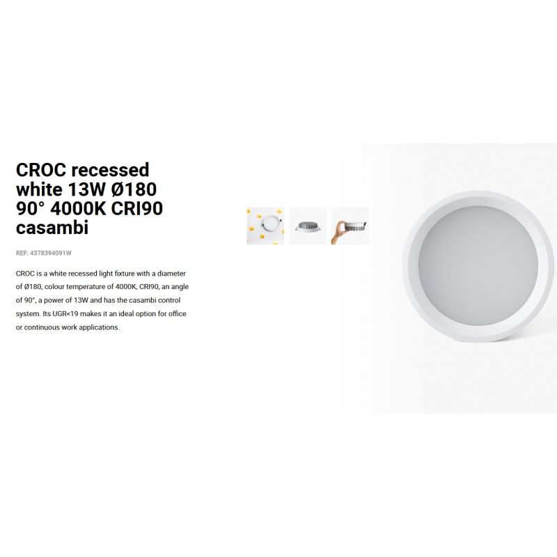 Vezi fișa cu informații despre produsCROC este un corp de iluminat alb incastrat, optica microprismatică pentru controlul strălucirii îl face o opțiune perfectă pentru iluminatul general al spatiilor comerciale si rezidentialeare, datorita protectiei IP44 este ideal pentru spațiile cu prezența umidității.