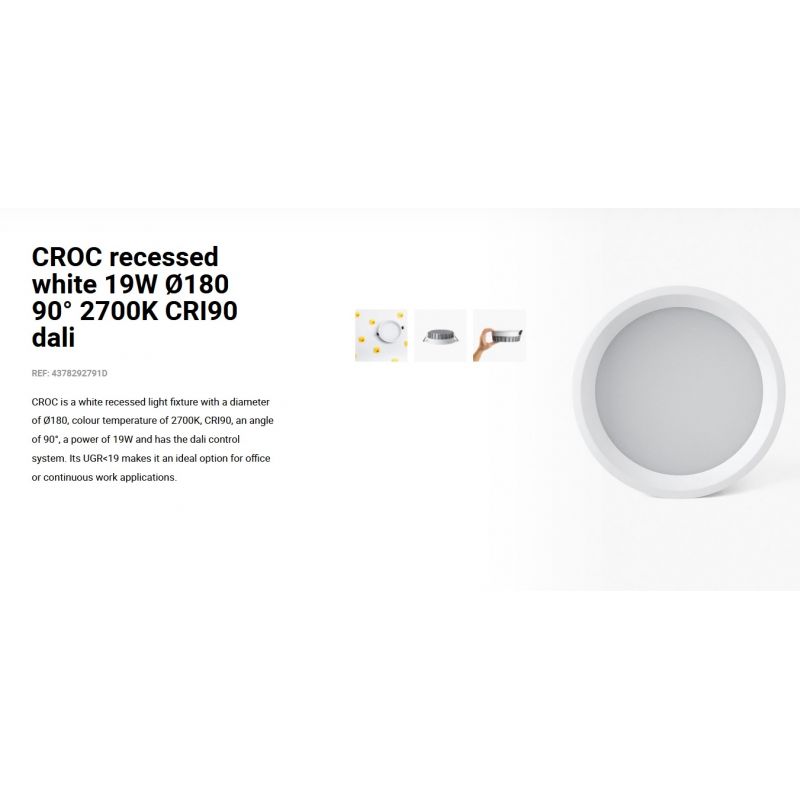 Vezi fișa cu informații despre produsCROC este un corp de iluminat alb incastrat, optica microprismatică pentru controlul strălucirii îl face o opțiune perfectă pentru iluminatul general al spatiilor comerciale si rezidentialeare, datorita protectiei IP44 este ideal pentru spațiile cu prezența umidității.