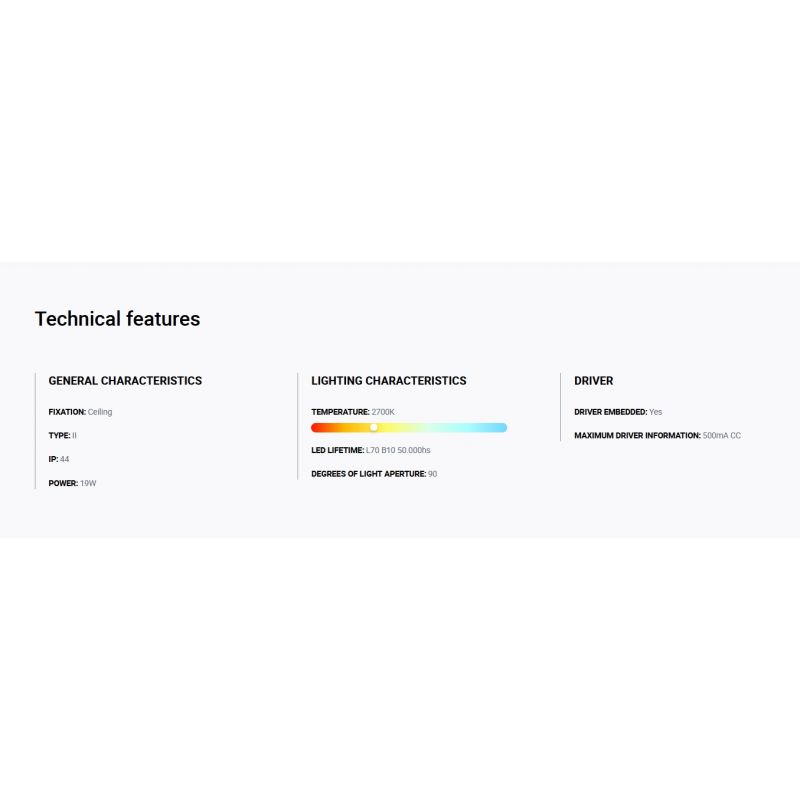 Dimensiuni | diametru:18cm; inaltime:6cm; diametru decupaj tavan:17,6cm |