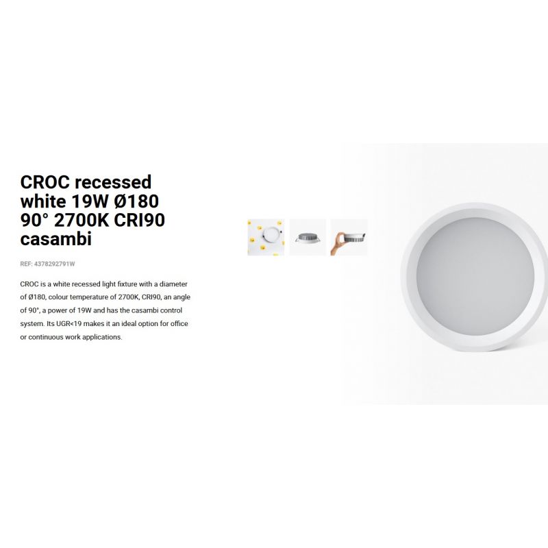Informatii produs: | spot LED incastrabil cu grad de protectie la umiditate de IP44, iluminare 90 grade +driver cu sistem de control Casambi inclus |