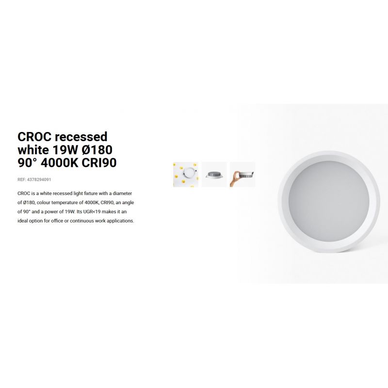 Vezi fișa cu informații despre produsCROC este un corp de iluminat alb incastrat, optica microprismatică pentru controlul strălucirii îl face o opțiune perfectă pentru iluminatul general al spatiilor comerciale si rezidentialeare, datorita protectiei IP44 este ideal pentru spațiile cu prezența umidității.