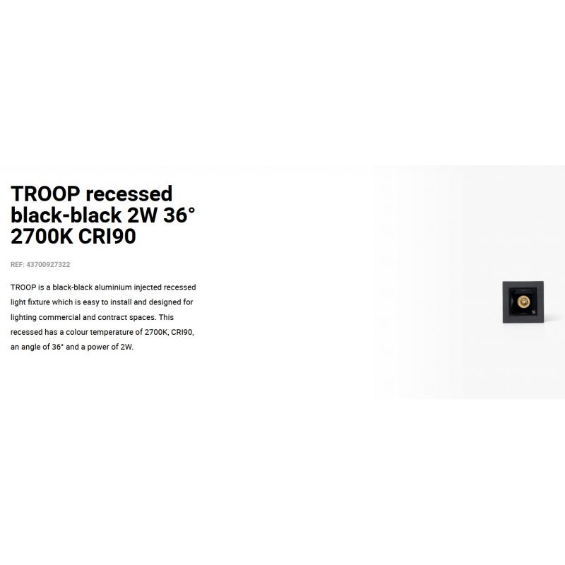 Informatii produs: | mini spot LED incastrabil TROOP 1L cu grad de iluminare 36 grade, IP20 ideal pentru spatii publice, comeciale |