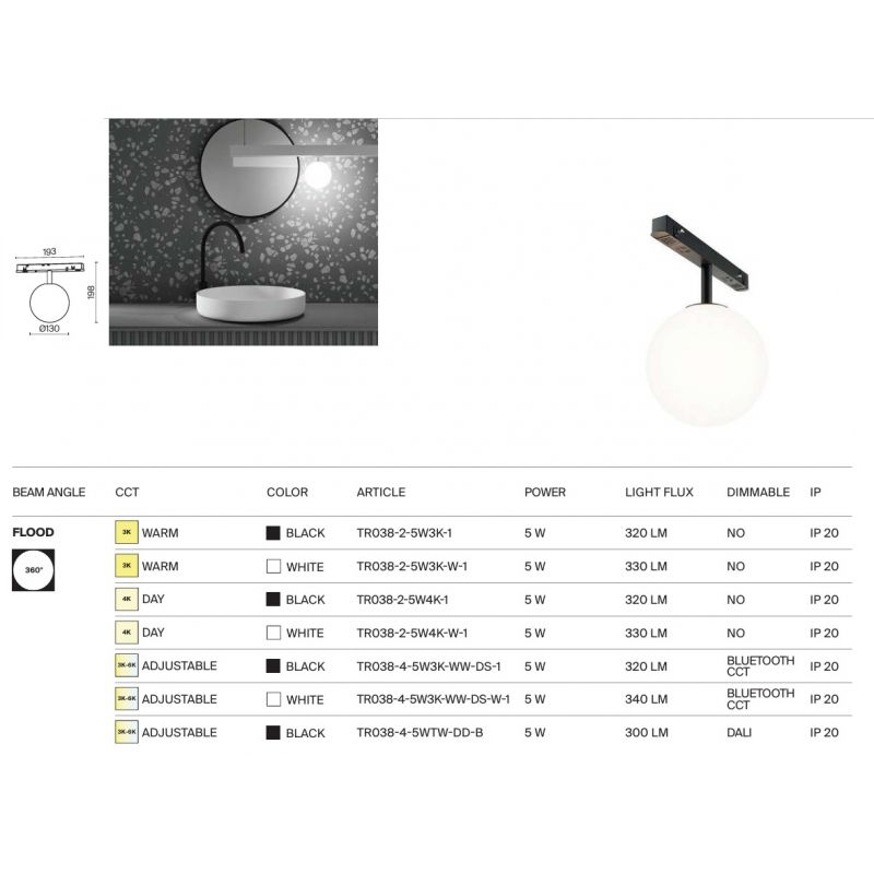 | Putere | 5 Watt LED integrat, 320lm, 4000K |