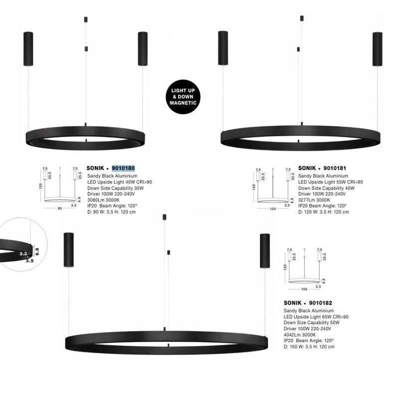 | Informatii produs: | Sistem circular sina magnetica suspendata cu iluminat LED in partea superioara. Se accesorizeaza cu module LED flexibile (excluse din pret) disponibile gama Breda cu putere maxima 50 Watt. |