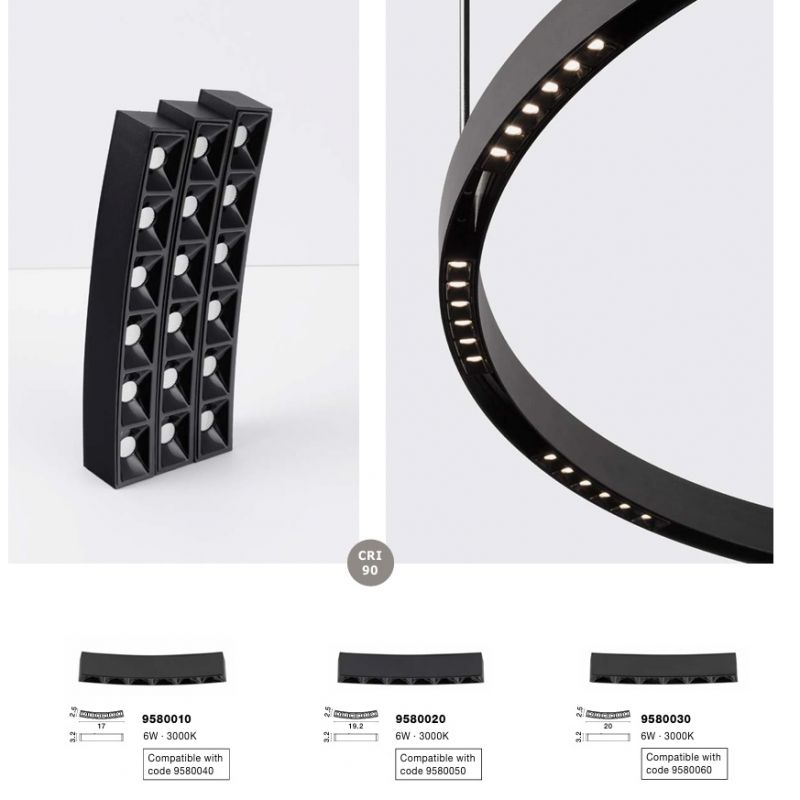 | Informatii produs: | Sistem circular sina magnetica suspendata cu iluminat LED in partea superioara. Se accesorizeaza cu module LED ref. 9580010 (excluse din pret) disponibile gama Halo cu putere maxima 100 Watt. |