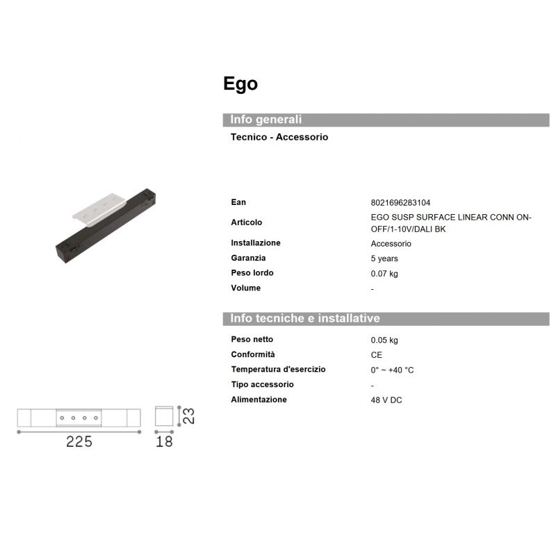 | Informatii produs: | accesoriu conector liniar de suprafata sau pentru suspensie pentu sina magnetica Ego |
