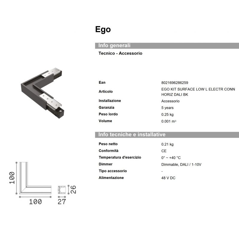 Accesoriu, element colt pentru sina magnetica Ego L on-off