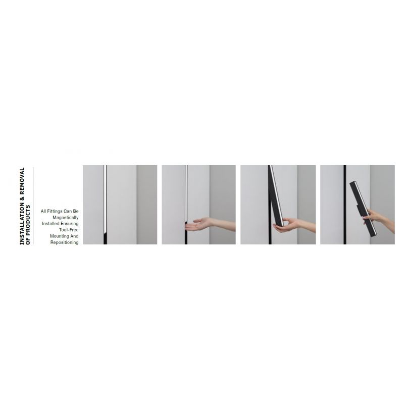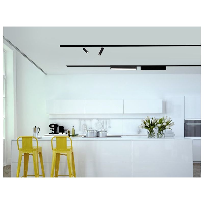 Corp de iluminat pentru sina magnetica, care poate fi asamblat cu un sistem de fixare magnetică. Sine magnetice compatibile: Buxton 01 aplicata pe tavan sau suspendata, Buxton 02 încastrata in tavan fals, Buxon 3 pentru instalatii hexagon, seria Loop, sină magnetica circulara și șina magnetică dreptunghiulară SIGN.