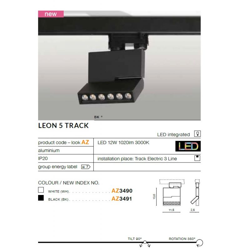 Corp de iluminat LED pentru sina trifazata Track. Va arăta excelent în interioarele moderne. Potrivit pentru iluminat în cafenele, baruri, birouri și spații rezidențiale. Fabricat din aluminiu, are un braț mobil.