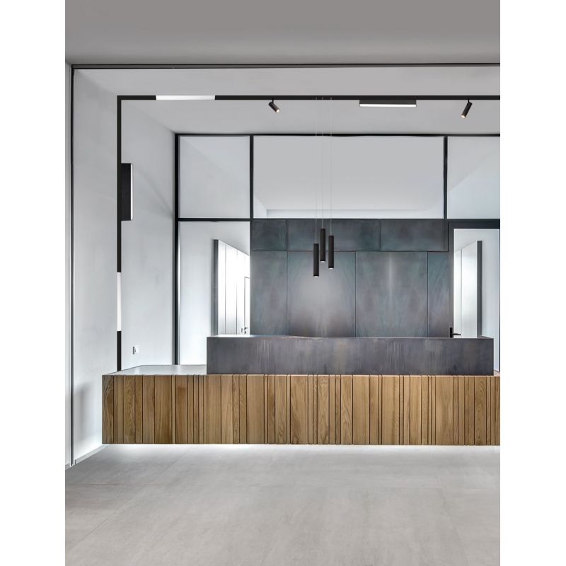 Corp de iluminat pentru sina magnetica, care poate fi asamblat cu un sistem de fixare magnetică. Sine magnetice compatibile: Buxton 01 aplicata pe tavan sau suspendata, Buxton 02 încastrata in tavan fals, Buxon 3 pentru instalatii hexagon, seria Loop, sină magnetica circulara și șina magnetică dreptunghiulară SIGN.