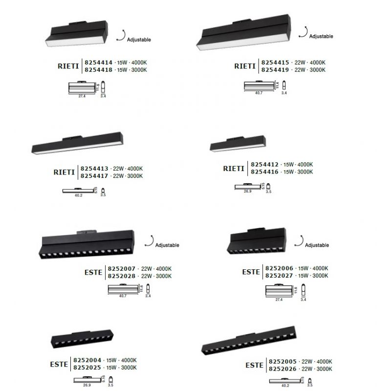 Corp de iluminat pentru sina magnetica, care poate fi asamblat cu un sistem de fixare magnetică. Sine magnetice compatibile: Buxton 01 aplicata pe tavan sau suspendata, Buxton 02 încastrata in tavan fals, Buxon 3 pentru instalatii hexagon, seria Loop, sină magnetica circulara și șina magnetică dreptunghiulară SIGN.