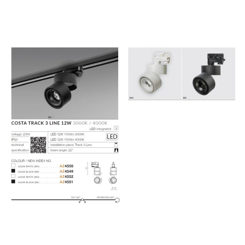 Spot LED directionabil pe sina, corp de iluminat pentru sina trifazata Track. Va arăta excelent în interioarele moderne. Potrivit pentru iluminat în cafenele, baruri, birouri și spații rezidențiale. Fabricat din metal, are un braț mobil.