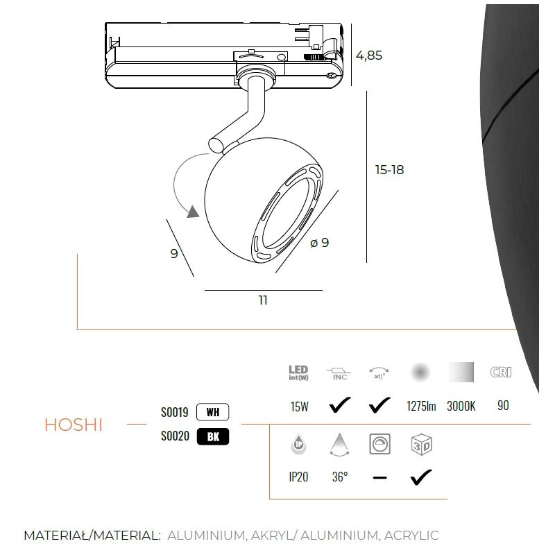 | Informatii produs: | Spot LED directionabil pentru sine trifazate. Sina exclusa din pret! |