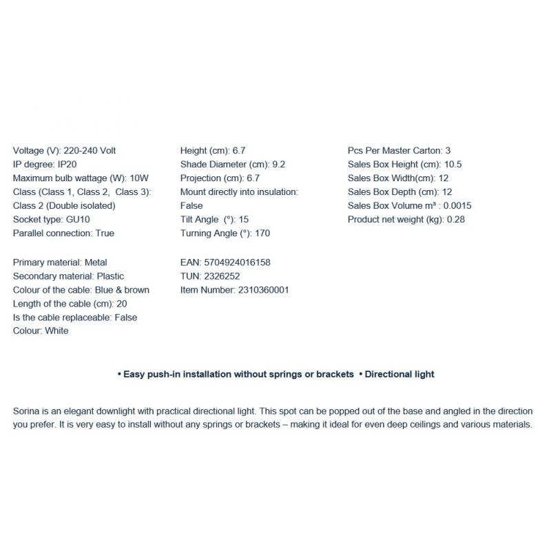 Dimensiuni | diametru:9,2cm; adancime:6,7cm; diametru decupaj tavan:8,3cm |