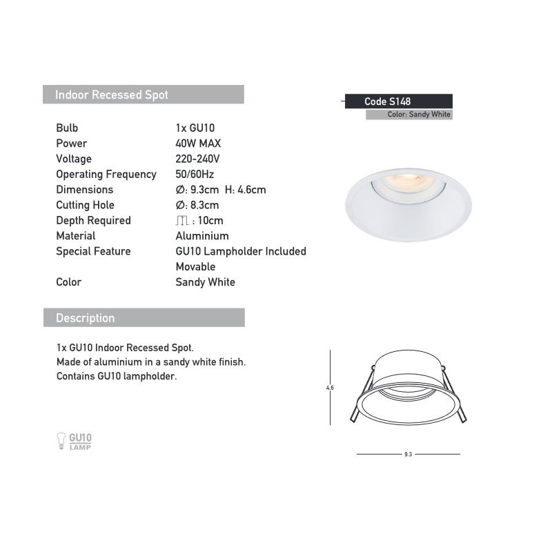 Dimensiuni | diametru:9,3cm; adancime:4,6cm; decupaj tavan:8,3cm |