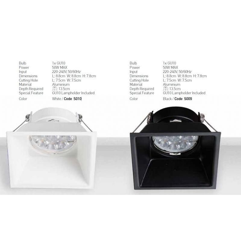 Dimensiuni | 8,8x 8,8cm; adancime:7,8cm; decupaj tavan:7,5x 7,5cm |