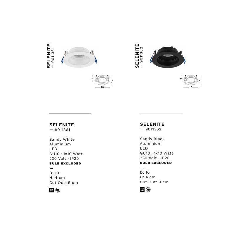 Dimensiuni | diametru:10cm; inaltime:4cm; decupaj tavan:9cm |