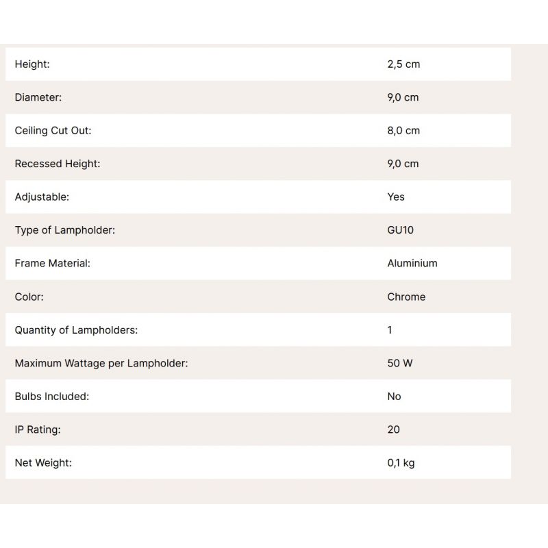 | Dimensiuni | diametru:9cm; inaltime:2,5cm; decupaj tavan:8cm |