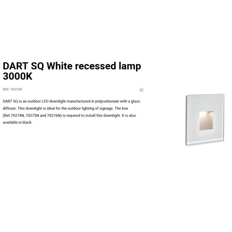 Informatii produs: | Atentie! Necesita accesoriu / cutie incastrata sau aplicata pentru spoturile DART (cod Ref. 70276, 70274, 70275) care se achizitioneaza separat (nu sunt incluse in pret) |