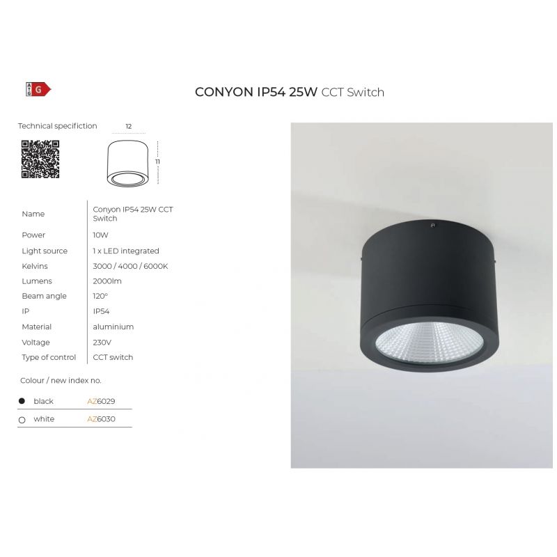 Putere | 1x LED integrat 25Watt, 2000Lm; Switch 3000K/4000K/6000K, inclus in pret |