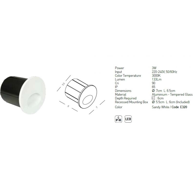 Putere | 3Watt LED integrat, 133Lm, 3000K, inclus in pret |