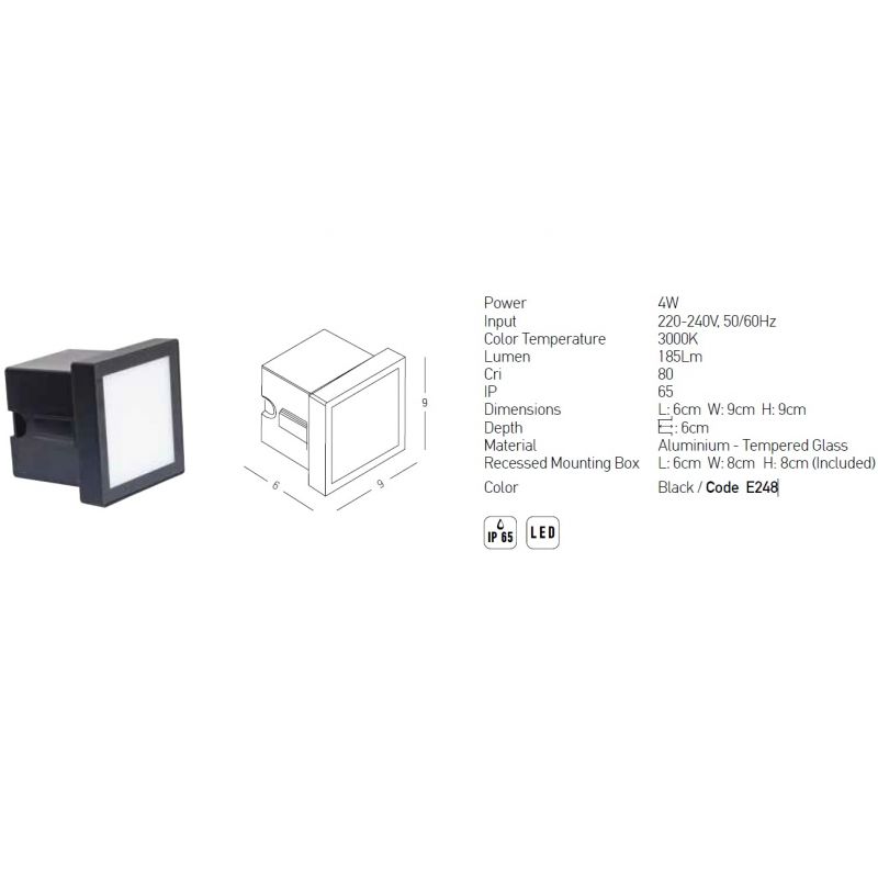 Materiale | aluminiu finisaj negru, sticla (tempered glass), cutie de montare incasabila inclusa in pret |