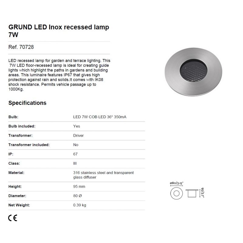 Informatii produs: | lampa de iluminat cu protectie IP67 special conceputa pentru exterior, spot incastrabil in pamant si pavaj, dotat cu IK08 rezistenta la socuri ce permite o sarcina pana la 1000 kg. |