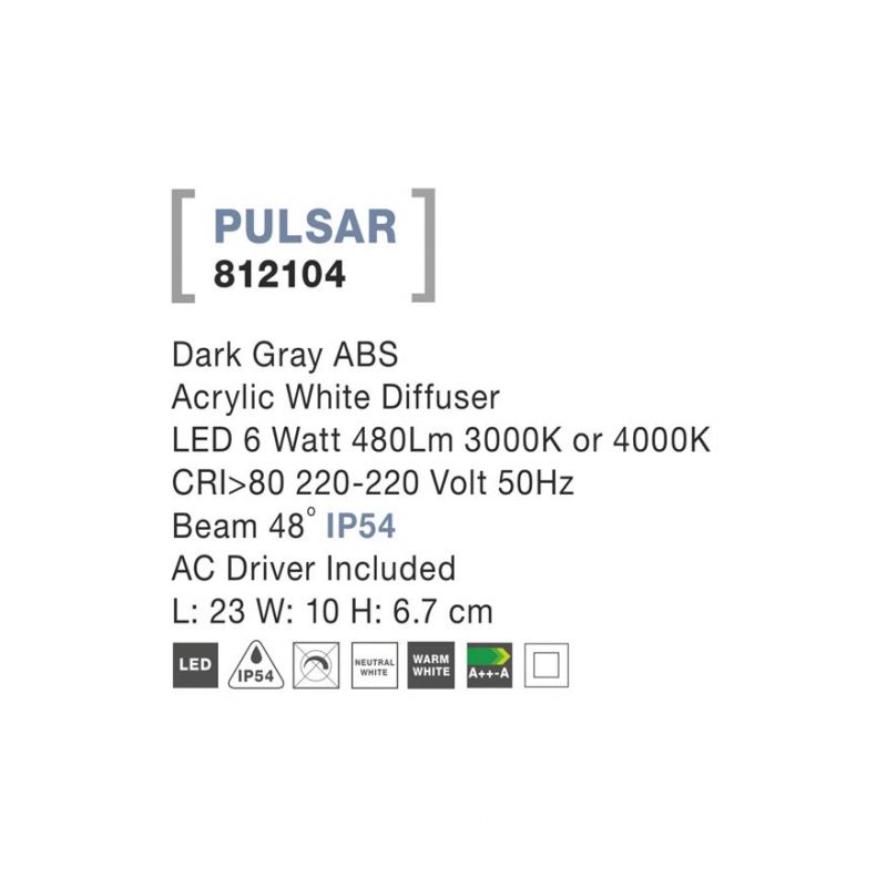 Descriere | ABS finisaj gri inchis, difuzor acrilic alb |