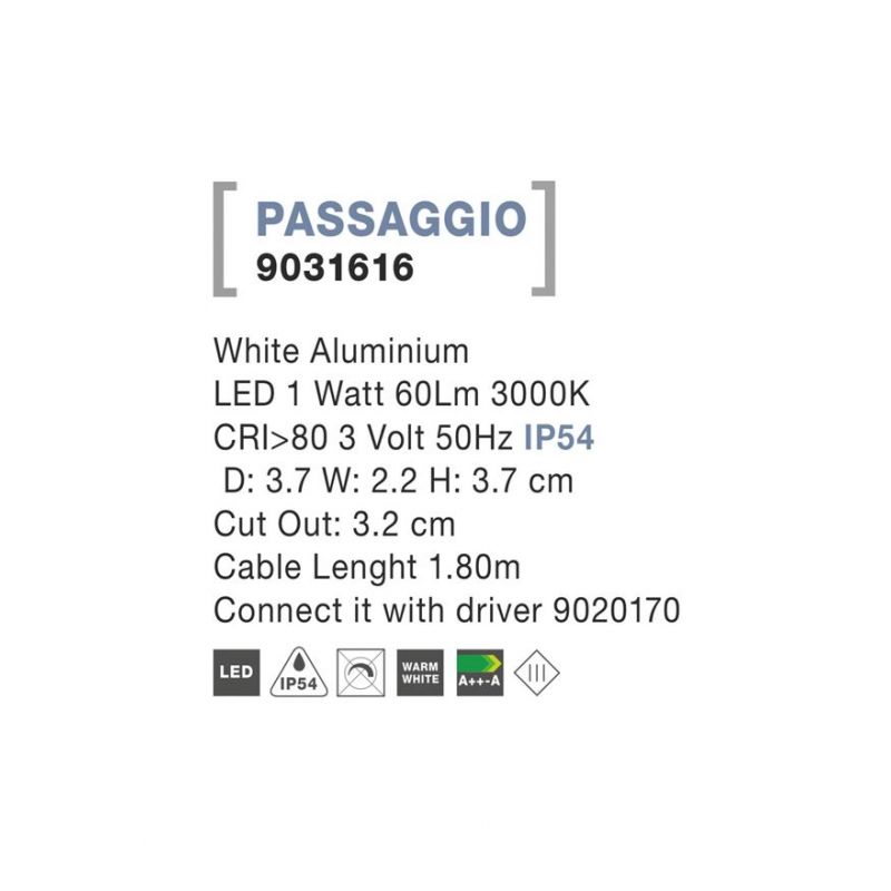 Putere | 1Watt bec LED integrat 60Lm 3000K inclus in pret, (driver LED: cod: NVL-9020170 exclus din pret) |