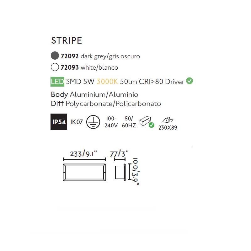 Descriere | aluminiu finisaj gri inchis, difuzor policarbonat |