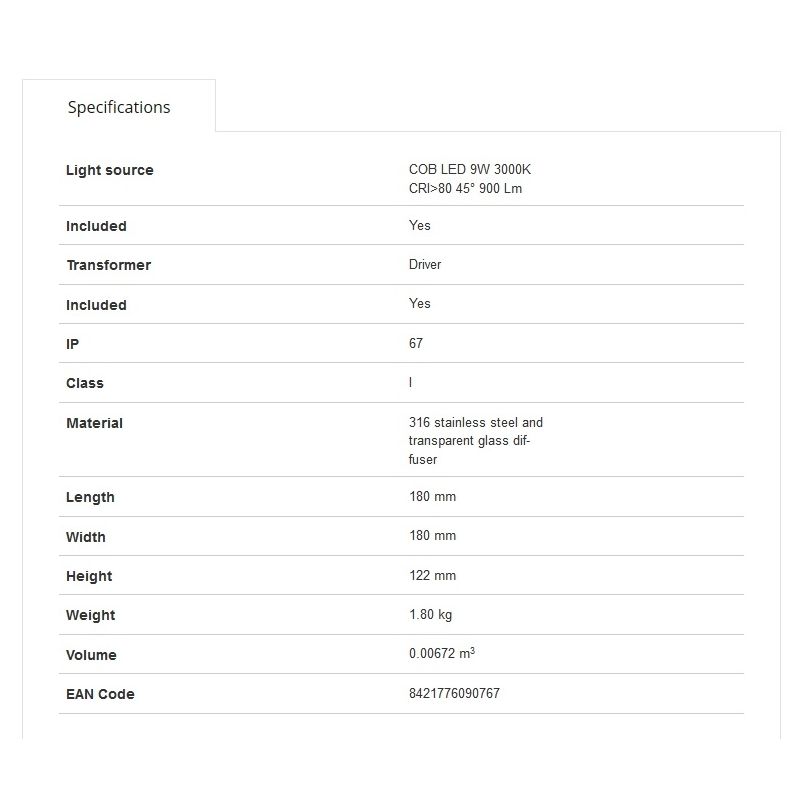 Informatii produs: | lampa de iluminat cu protectie IP67 special conceputa pentru exterior , spot incastrabil in pamant si pavaj, dotat cu IK08 rezistenta la socuri ce permite o sarcina pana la 2000 kg. |