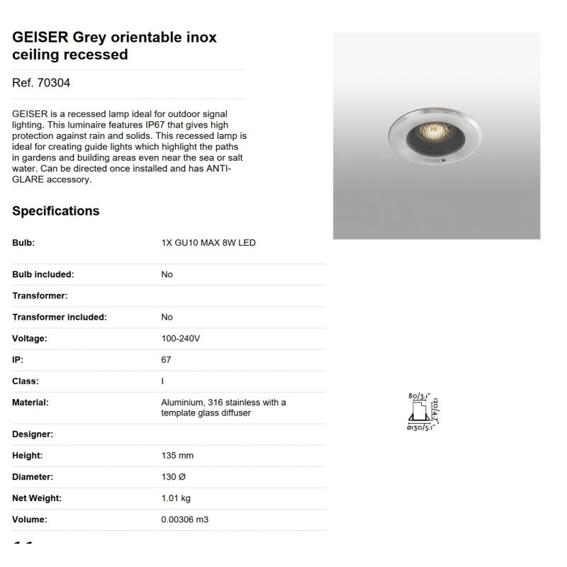Informatii produs: | spot incastrabil, orientabil cu protectie IP67 special conceput pentru iluminatul zonelor de exterior cu umiditate ridicata |