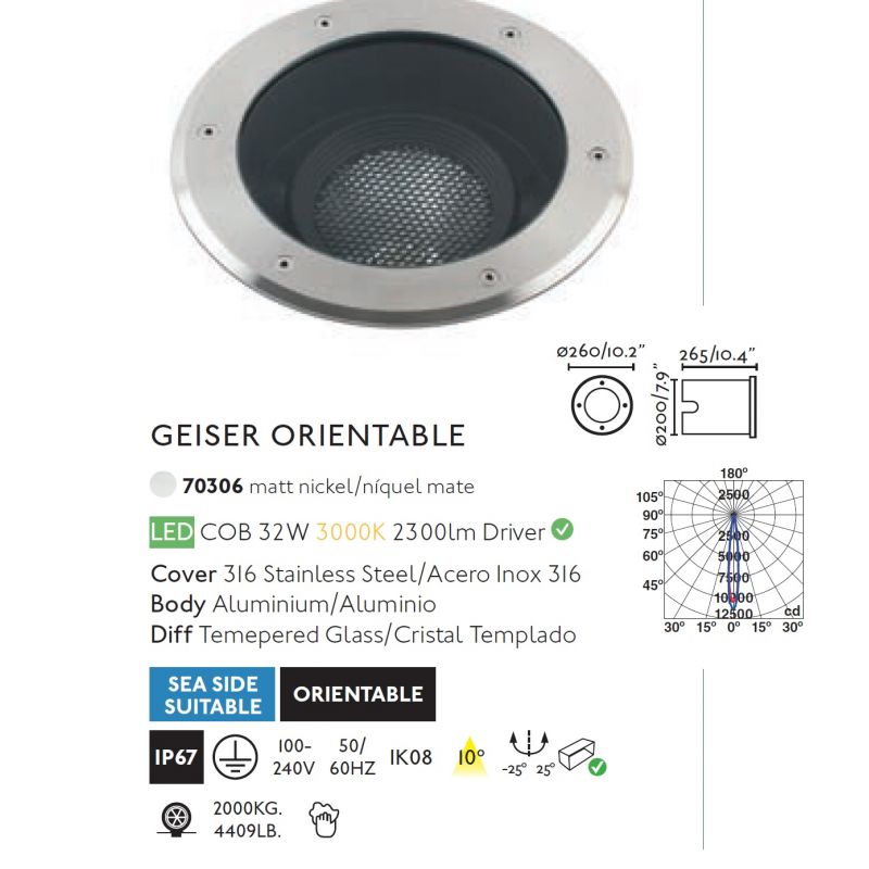 Informatii produs: | spot incastrabil, orientabil cu protectie IP67 special conceputa pentru exterior, spot incastrabil in pamant si pavaj, rezistent la socuri ce permite o sarcina pana la 2000 kg. |