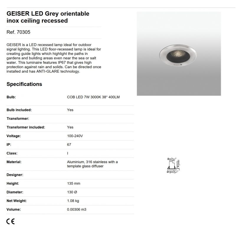Informatii produs: | spot incastrabil, orientabil cu protectie IP67 special conceput pentru iluminatul zonelor de exterior cu umiditate ridicata |