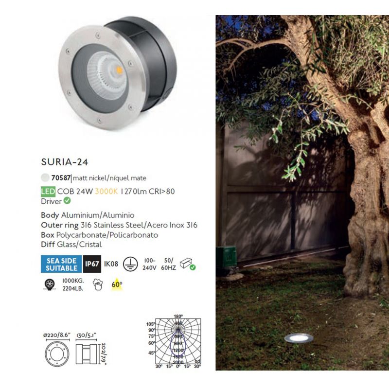 Spot LED incastrabil pentru iluminat exterior utilizat la pavaj, lampa care evidențiază traseele în zonele din curte, terasa și gradina ca lumina de ghidare, fiind un corp de iluminat cu IP67 potrivit în zone cu umiditate ridicată care oferă protectie mare împotriva ploii și a solidelor, dotat cu IK08 rezistenta la socuri ce permite o sarcina pana la 1000 kg.