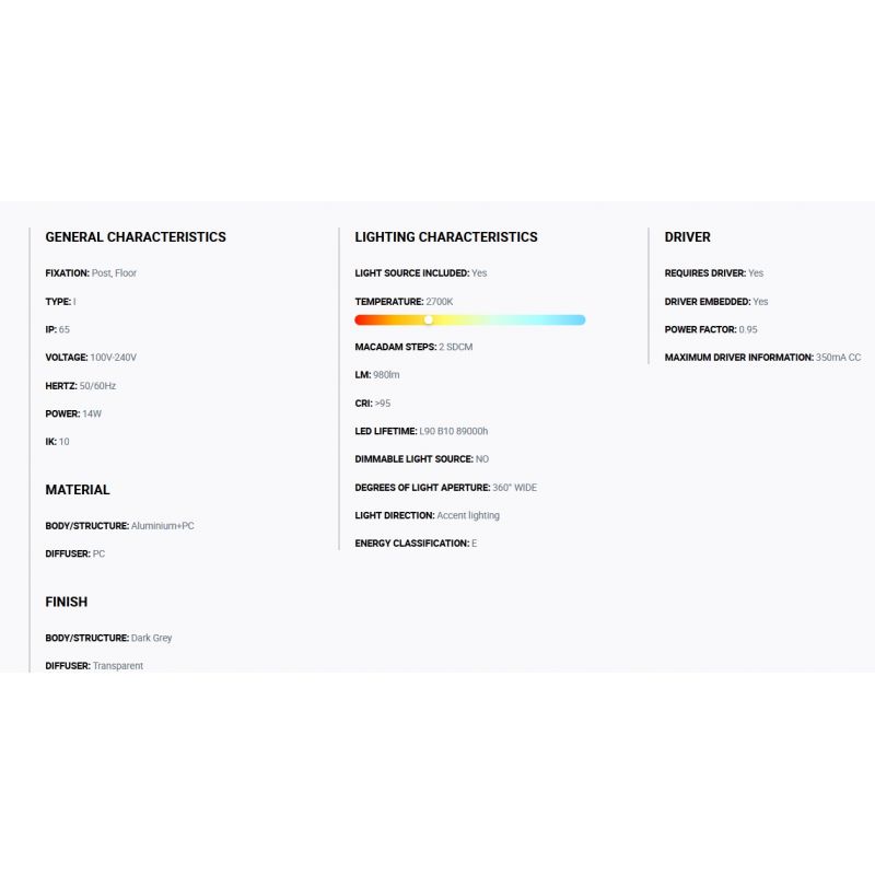 Materiale | aluminiu gri inchis, difuzor Policarbonat transparent |