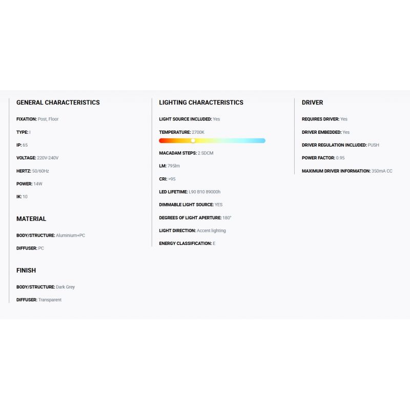Materiale | aluminiu gri inchis, difuzor Policarbonat transparent |