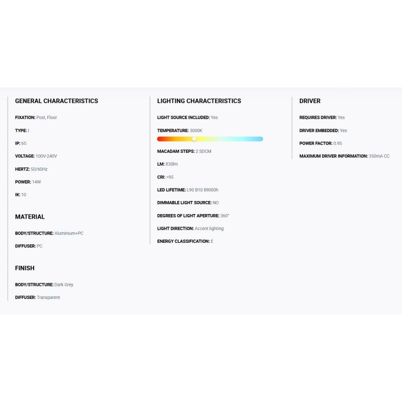 Materiale | aluminiu gri inchis, difuzor Policarbonat transparent |