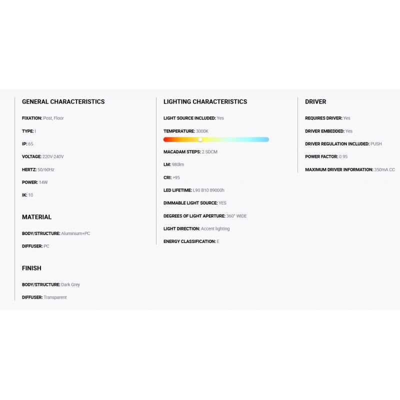 Materiale | aluminiu gri inchis, difuzor Policarbonat transparent |