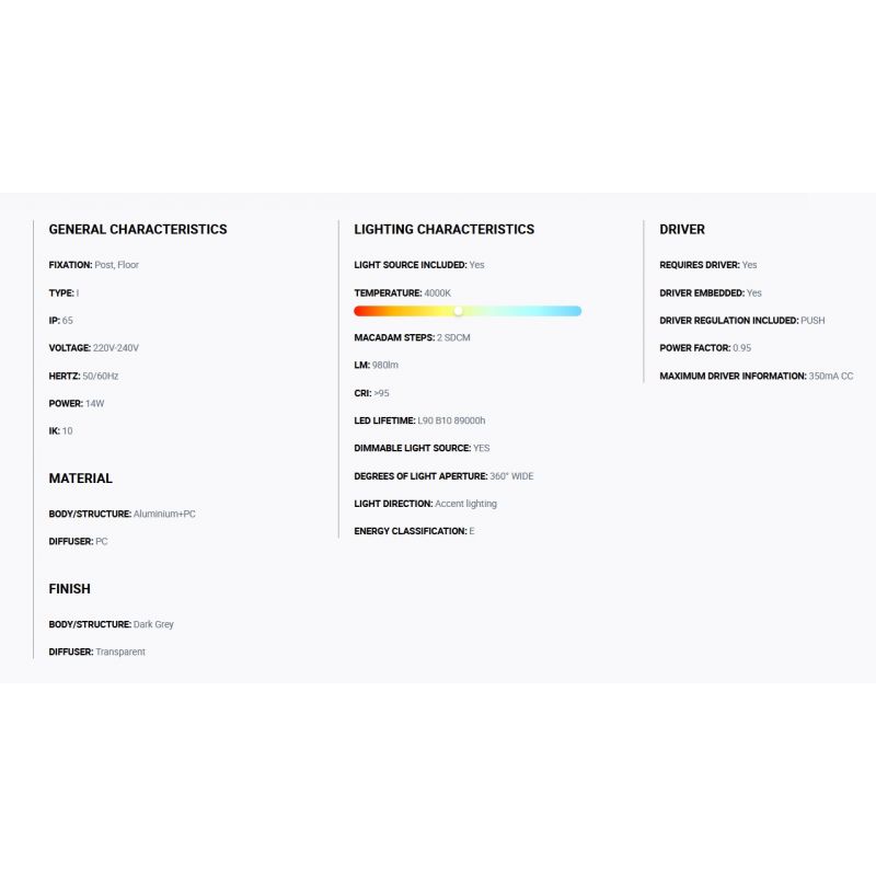 | Materiale | aluminiu gri inchis, difuzor Policarbonat transparent |