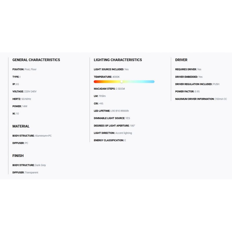 Materiale | aluminiu gri inchis, difuzor Policarbonat transparent |