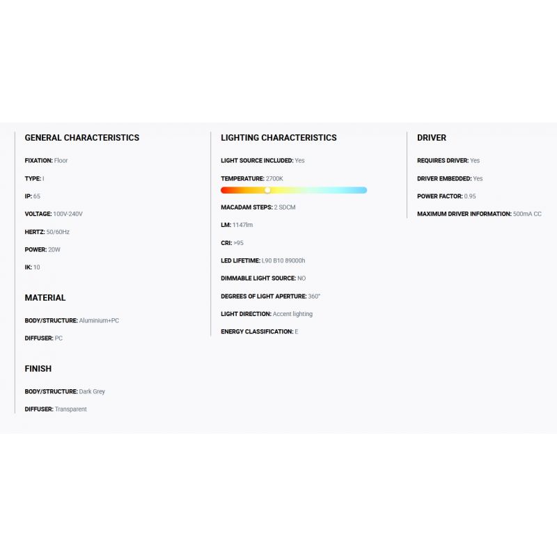 Materiale | aluminiu gri inchis, difuzor Policarbonat transparent |