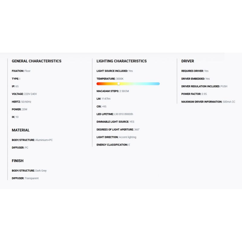 Materiale | aluminiu gri inchis, difuzor Policarbonat transparent |
