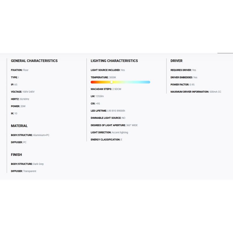 Materiale | aluminiu gri inchis, difuzor Policarbonat transparent |