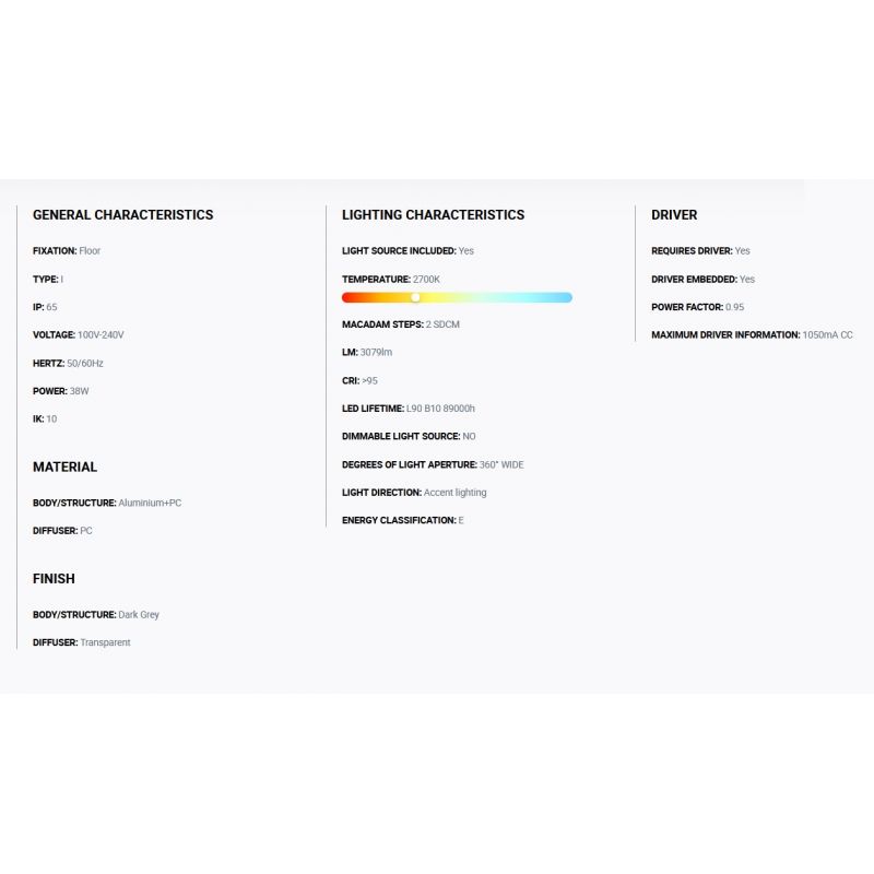 Materiale | aluminiu gri inchis, difuzor Policarbonat transparent |