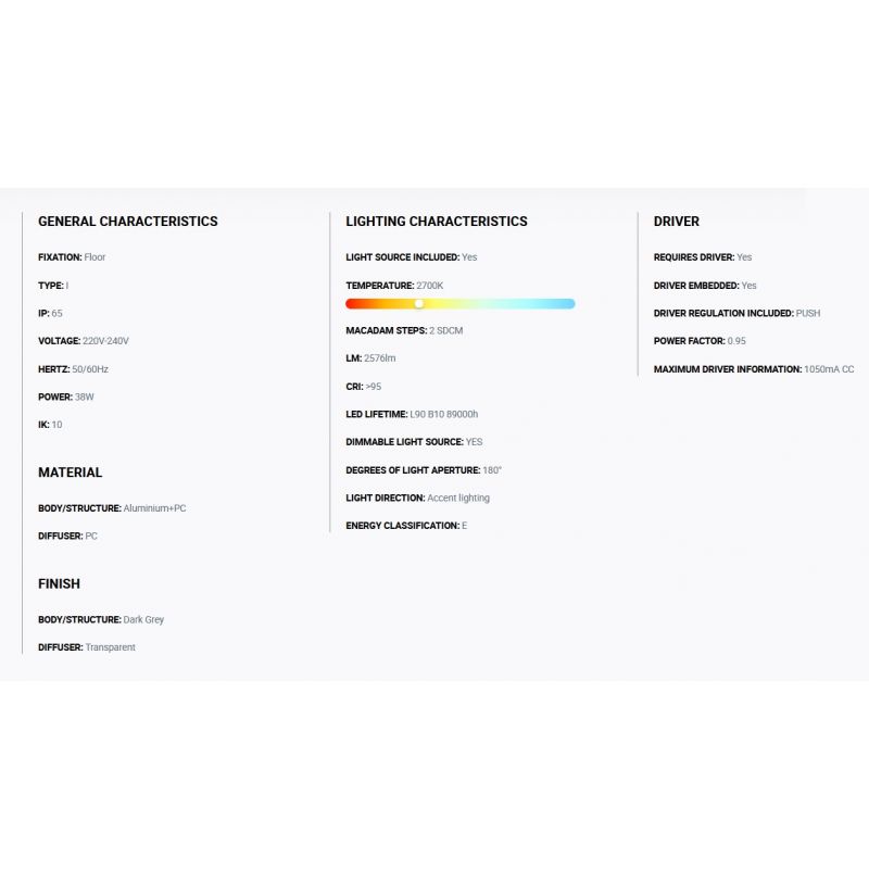 Materiale | aluminiu gri inchis, difuzor Policarbonat transparent |