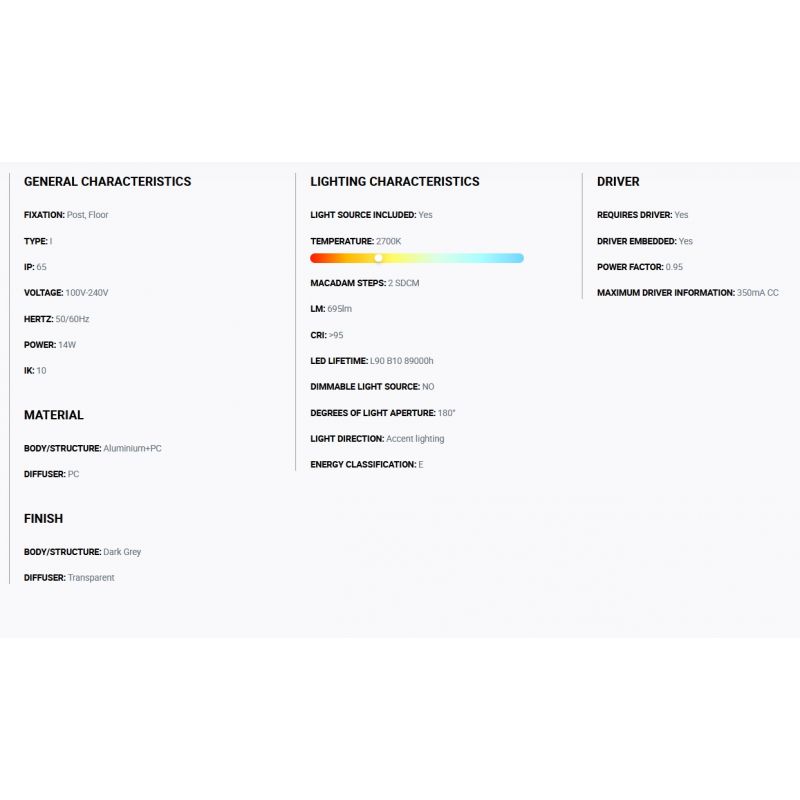 Materiale | aluminiu gri inchis, difuzor Policarbonat transparent |