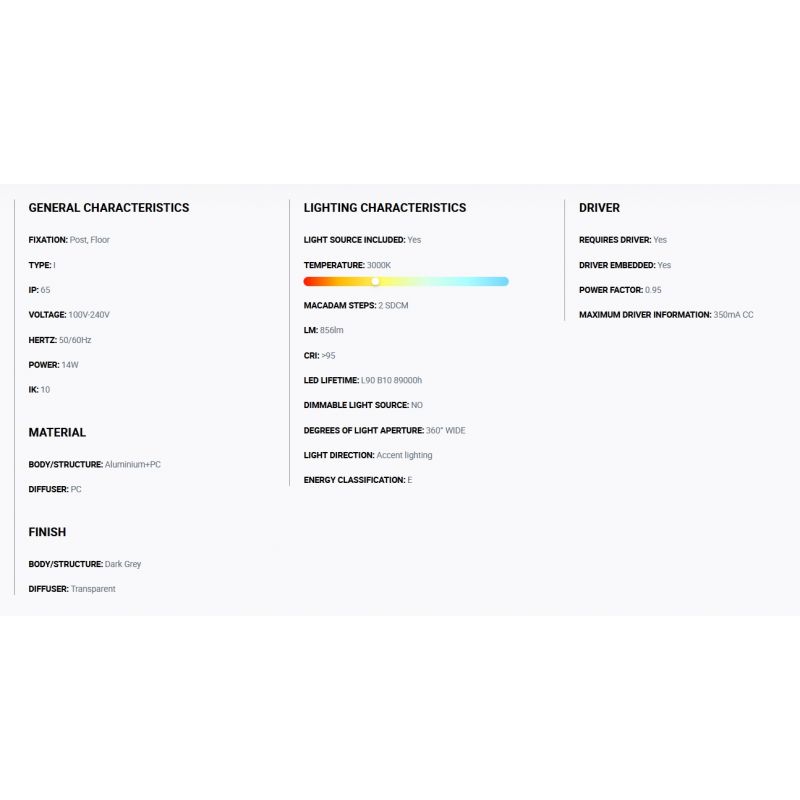 Materiale | aluminiu gri inchis, difuzor Policarbonat transparent |